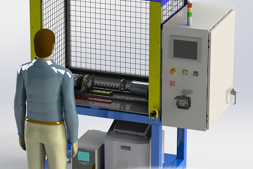 The Muffler Body Leak Tester features variable length presets, air pressure testing, and a digital interface.